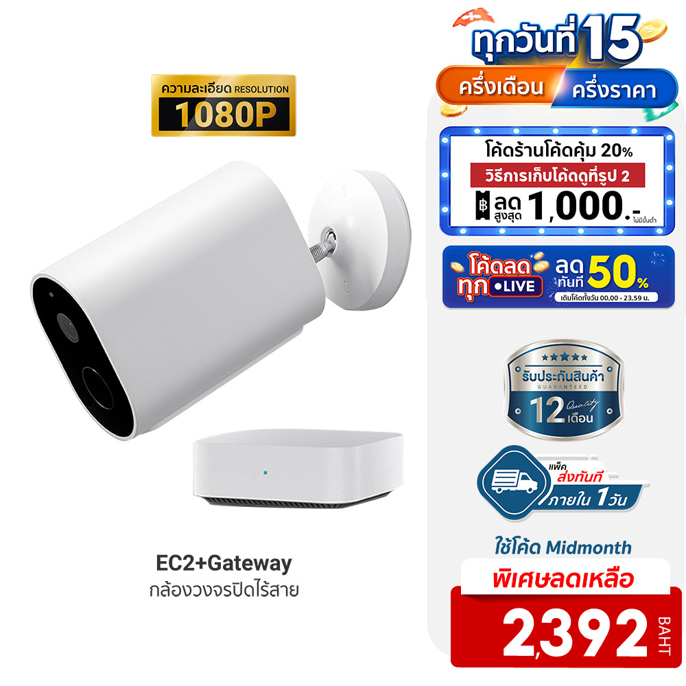 | IMILabThailand | 5053554512 | 71092556373 | [ลดเหลือ 2392] IMILAB EC2 / EC2+Gateway กล้องวงจรปิดไร้สาย (GB V.) 1080P แบตในตัว กันน้ำ IP66 ศูนย์ไทย -1Y | [object Object] | 2,490.00 | 2,315.70 | 59 | 2 | 4,631.40 | 2,199.00 | 2,045.07 | 2 | 5 | 50 | 30 | 61,352.10 | 1325% | 2,199.00 | 37 | 123% | 81,363.00 | ||||||