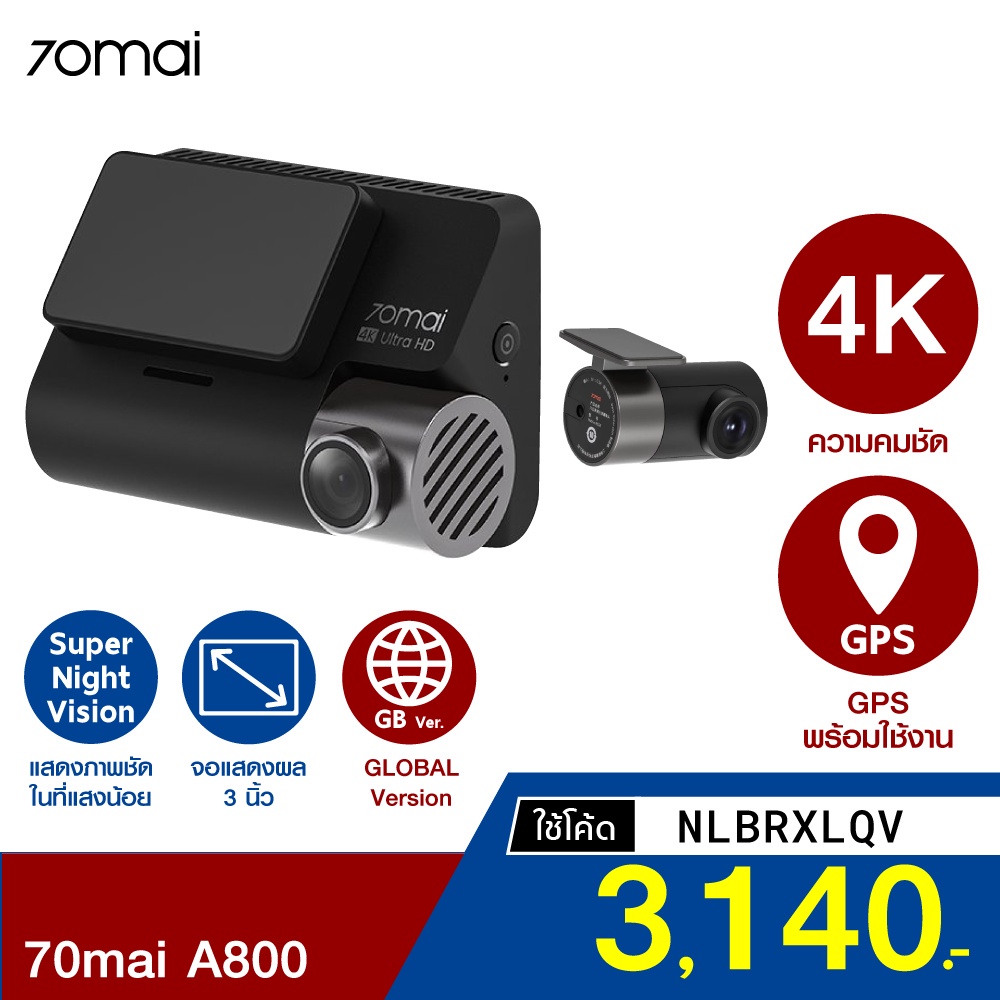 | ThaiSuperCam | 7845406256 | 74249701853 | ศูนย์ไทย [เหลือ 3140 บ. โค้ด NLBRXLQV] 70mai A800 4K GPS ในตัว กล้องรถยนต์ (GB Ver.) กล้องหน้า 4K-หลัง FHD -1Y | [object Object] | 3,749.00 | 3,561.55 | 1 | 0 | 0.00 | 3,699.00 | 3,514.05 | 2 | 3 | 30 | 20 | 70,281.00 | 0% | 3,699.00 | 0 | 0% | 0 | ||||||