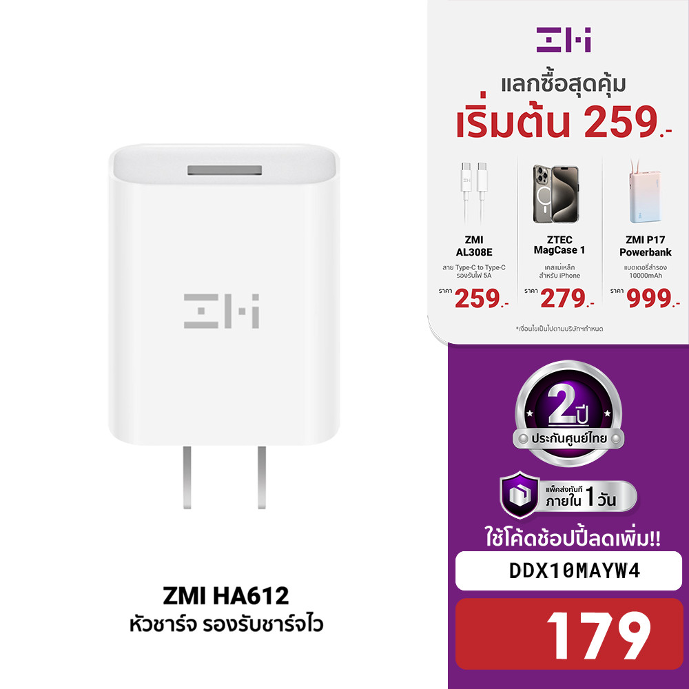| ZMIThailand | 1715051755 | 2793737710 | [179บ.โค้ดDDX10MAYW4] ZMI HA612 หัวชาร์จ 18W รองรับชาร์จไว QC3.0 ศูนย์ไทย ประกัน -2Y | [object Object] | 199.00 | 189.05 | 181 | 91 | 17,203.55 | 179.00 | 170.05 | 2 | 3 | 500 | 150 | 25,507.50 | 148% | 179.00 | 128 | 85% | 22,912.00 | ||||||