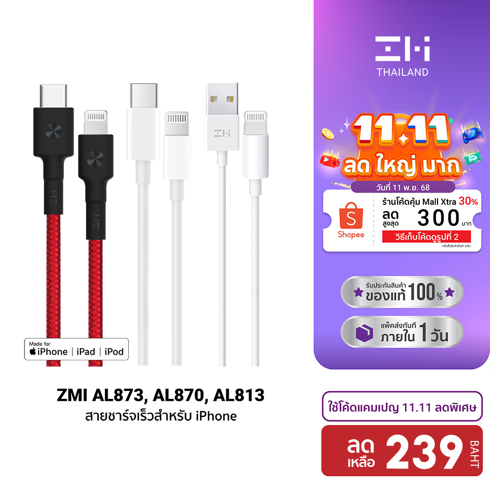 | ZMIThailand | 4353084485 | 71061645680 | [ลดเหลือ 239] ZMI สายชาร์จ lightning สำหรับ iPhone โดย Apple AL813 / AL873 / CUKTECH AL870 / CL315P (MFI) -2Y | [object Object] | 399.00 | 379.05 | 135 | 68 | 25,775.40 | 359.00 | 341.05 | 2 | 3 | 300 | 100 | 34,105.00 | 132% | 359.00 | 66 | 66% | 23,694.00 | ||||||