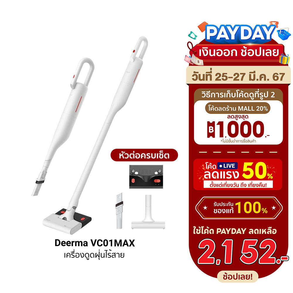| YoupinOfficialStore | 4047485271 | 43706934387 | [2152 ดูโค้ดรูป 2] Deerma VC01MAX / VC01 / VC20 Plus เครื่องดูดฝุ่น ไร้สาย ประกันศูนย์ไทย พร้อมส่ง -1Y | [object Object] | 1,699.00 | 1,563.08 | 18 | 1 | 1,563.08 | 1,599.00 | 1,471.08 | 2 | 3 | 3 | 200 | 0 | 200 | 100 | 147,108.00 | 9411% | 1,599.00 | 5 | 5% | 7,995.00 | |||