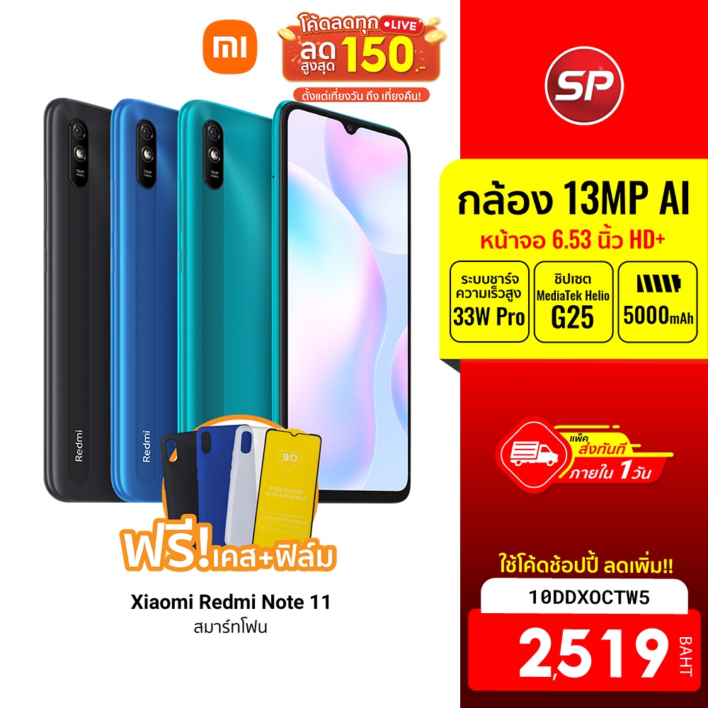ฟรี!! เคส + ฟีล์ม [2519 บ. โค้ด 10DDXOCTW5] ศูนย์ไทย Xiaomi Redmi 9A (2/32GB) สมาร์ทโฟน จอใหญ่ 6.53นิ้ว -15M |