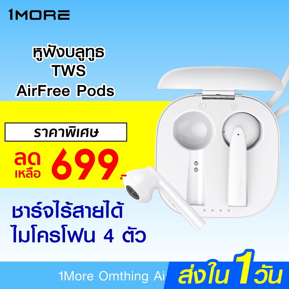 [ราคาพิเศษ 699บ.] 1More Omthing Airfree Pods รุ่นใหม่ ชาร์จไร้สาย ไมค์ 4ตัว ใช้นาน 25ชม. พร้อม ENC -30D |