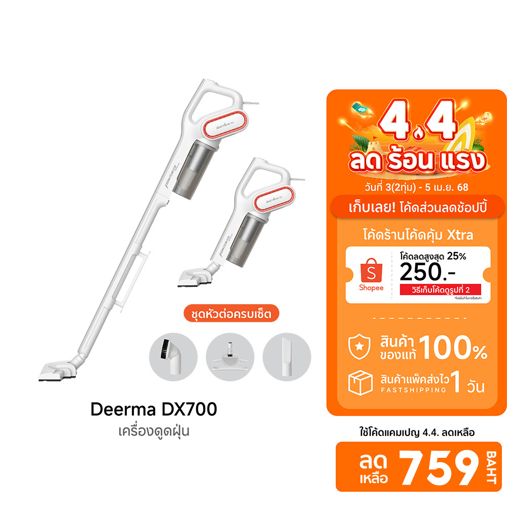 ศูนย์ไทย [ลดเหลือ 759] Deerma DX700 /DX700S เครื่องดูดฝุ่นแรงดูดสูง 15,000 Pa ไส้กรอง HEPA -1Y |