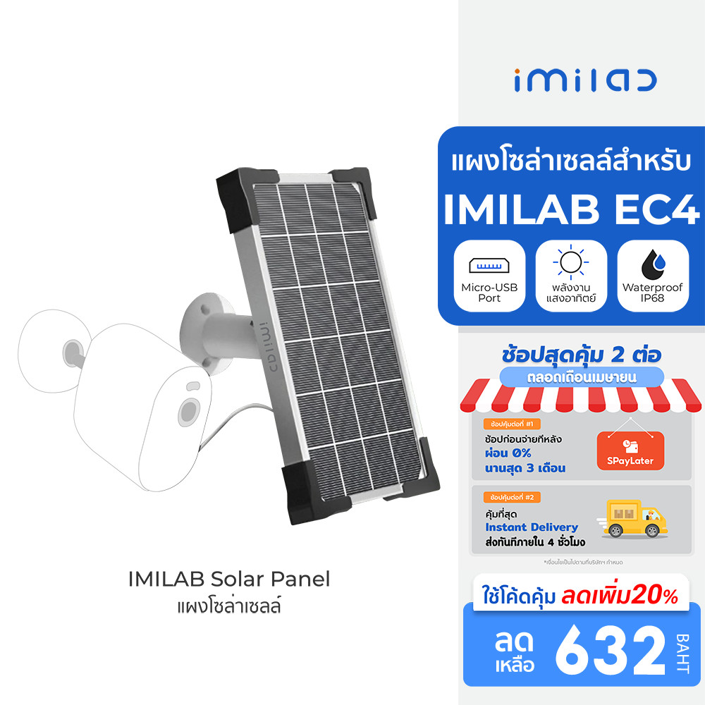 [ลดเหลือ 632] IMILAB Solar Panel แผงโซล่าเซลล์ สำหรับ IMILAB EC4 ผ่านพอร์ต Micro -USB ติดตั้งง่าย -6M