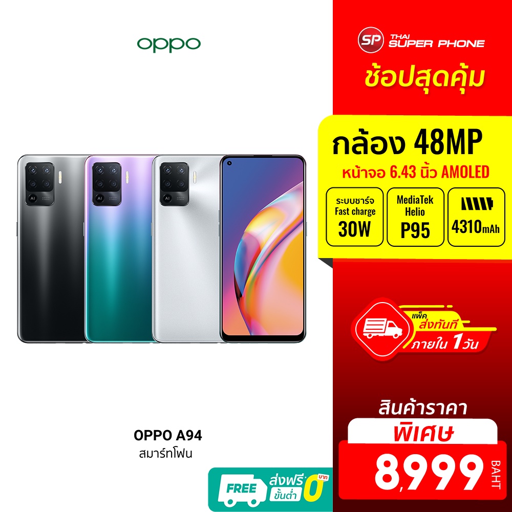 [ราคาพิเศษ 8999บ.] OPPO A94 (8/128) โทรศัพท์มือถือ กล้องหลัง 48 ล้านพิกเซล หน้าจอ 6.43 นิ้ว -1Y |