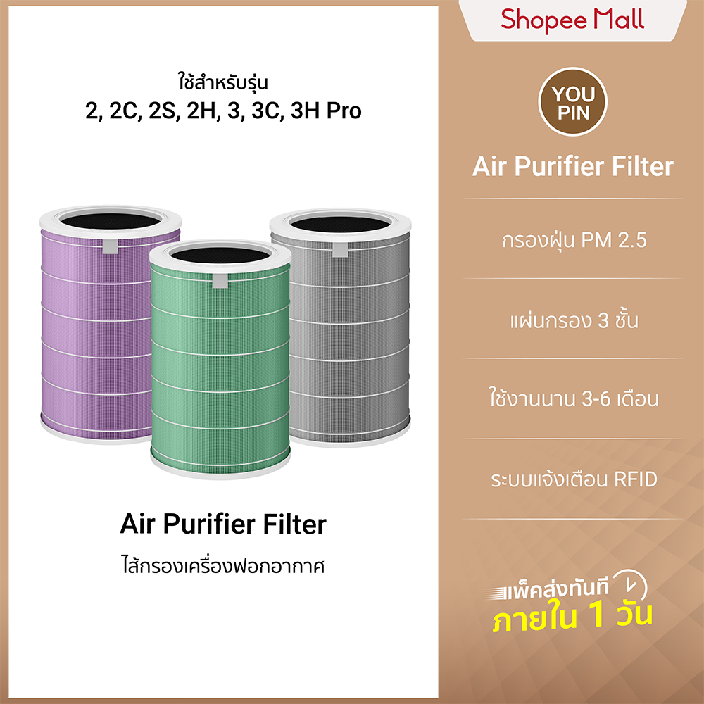 (รับประกันศูนย์ไทย) Xiaomi Air Purifier Filter ไส้กรองเครื่องฟอกอากาศ สำหรับ Xiaomi Air Purifier 2, 2H, 2S, 3, 3H, Pro |