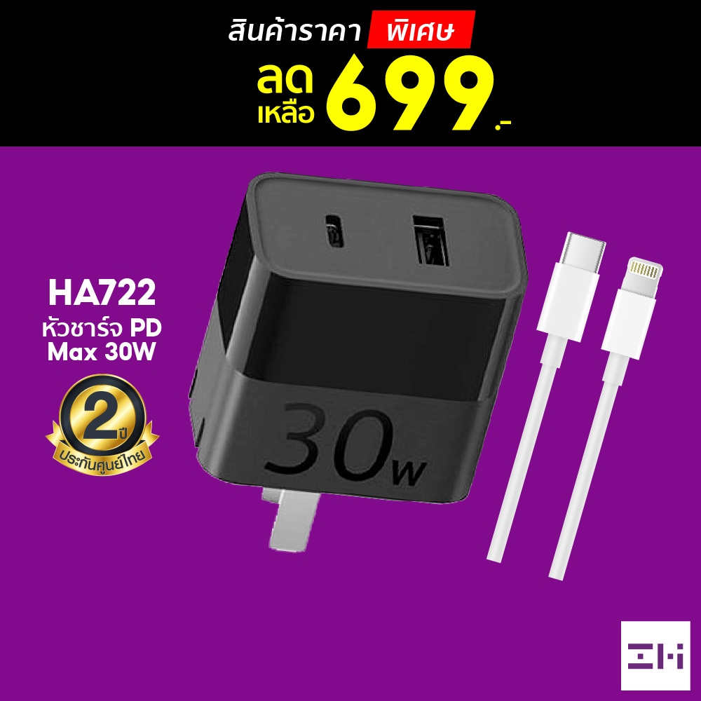 [ราคาพิเศษ 699บ.] ZMI HA722 หัวชาร์จ 30W กับ ZMI AL870 สายชาร์จType C to Lightning จาก Apple มาตรฐาน (MFI) -2Y