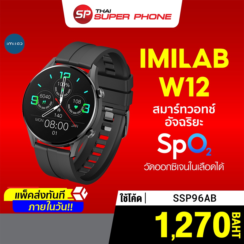 [1270 บ. โค้ด SSP96AB] IMILAB BY XIAOMI W12 นาฬิกาข้อมือผู้ชาย สมาร์ทวอทช์ วัดออกซิเจนในเลือด SpO2 ศูนย์ไทย |