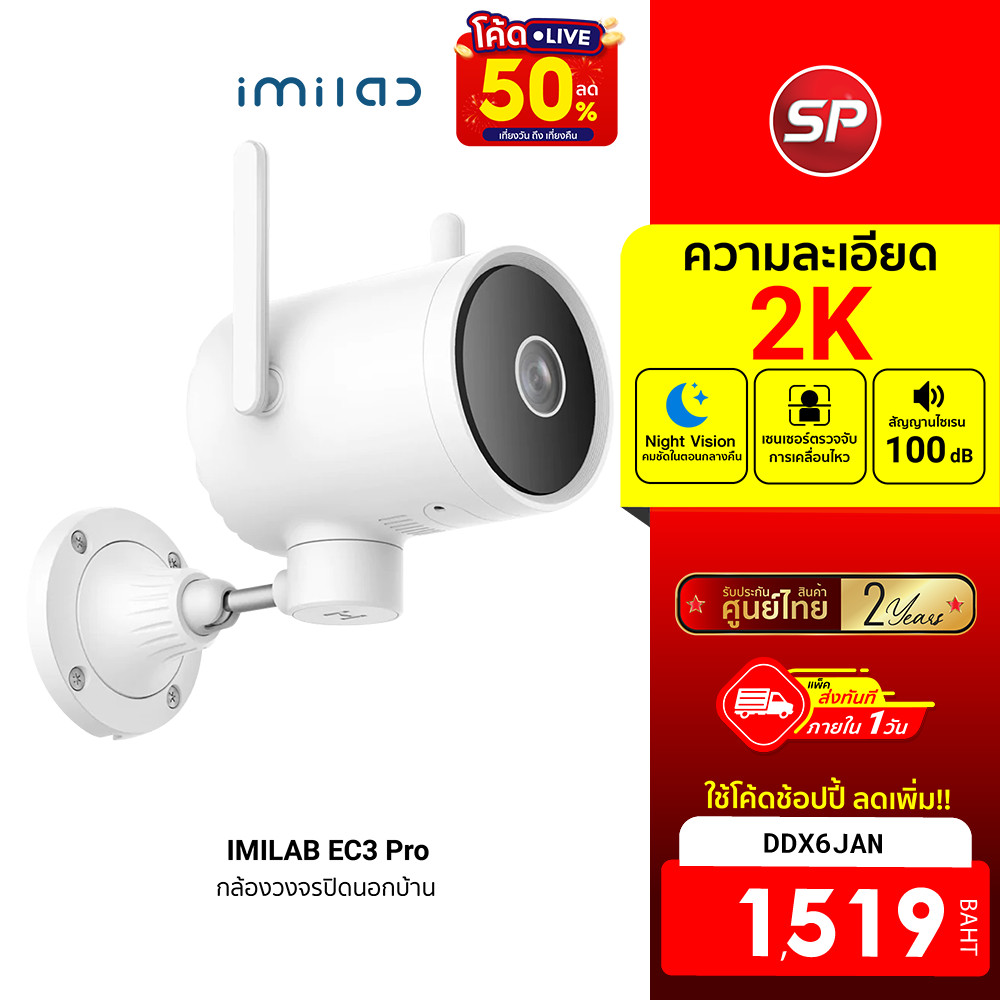 [1519 บ. โค้ด DDX6JAN] IMILAB EC3 Pro กล้องวงจรปิดนอกบ้าน ระบบAi ไล่โจร คมชัด 2K ฉลาดมากขึ้น โหมดกลางคืนชัดขึ้น- 2Y |