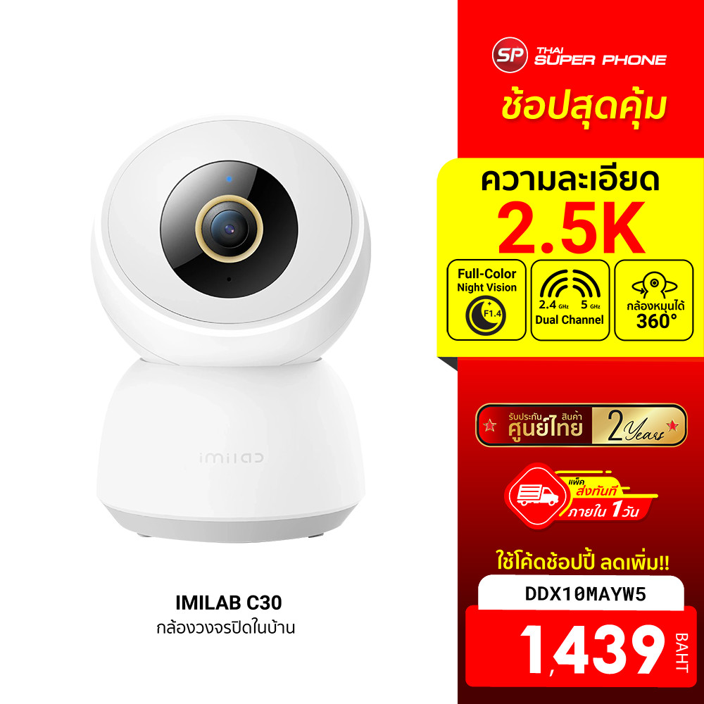 [1439 โค้ด DDX10MAYW5] IMILAB C30 5G (GB V.) กล้องวงจรปิด wifi ภายในบ้านคมชัด 2.5K แอปฯ IMILAB Home - 2Y |