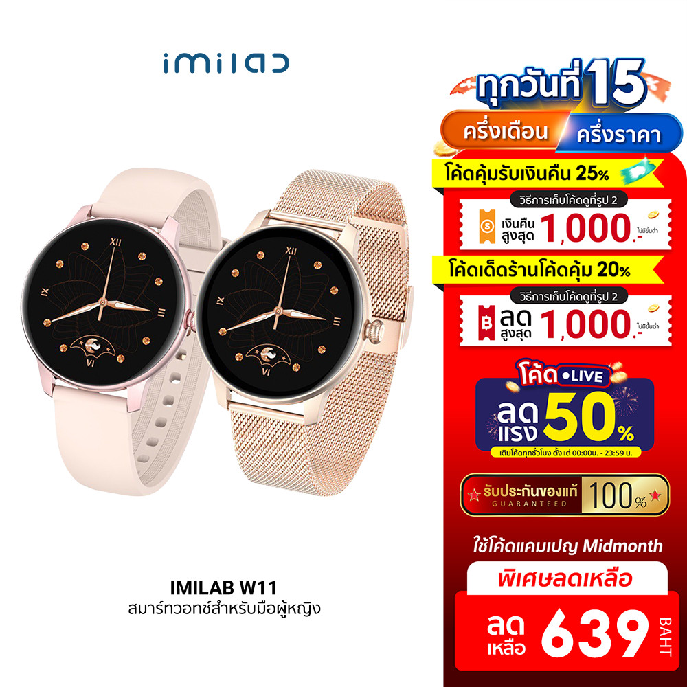 [639บ. ดูโค้ดรูป 2] IMILAB W11 นาฬิกาข้อมือผู้หญิง สมาร์ทวอทช์ วัดออกซิเจนในเลือด SpO2 กันน้ำ IP68 ศูนย์ไทย -1Y |