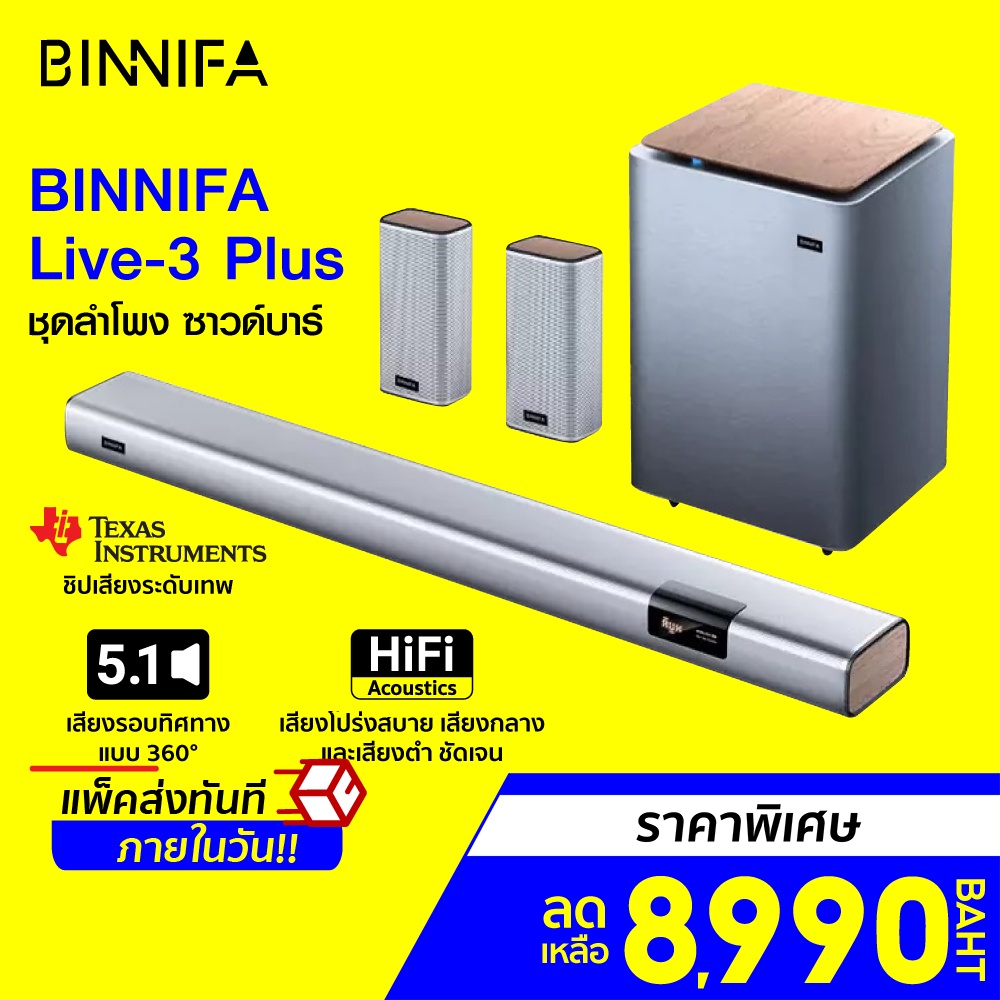 [ราคาพิเศษ 8990บ.] BINNIFA Live 3 Plus Cinema 5.1 ชุดลำโพง ซาวด์บาร์ ซับวูฟเฟอร์ Sound bar -30D