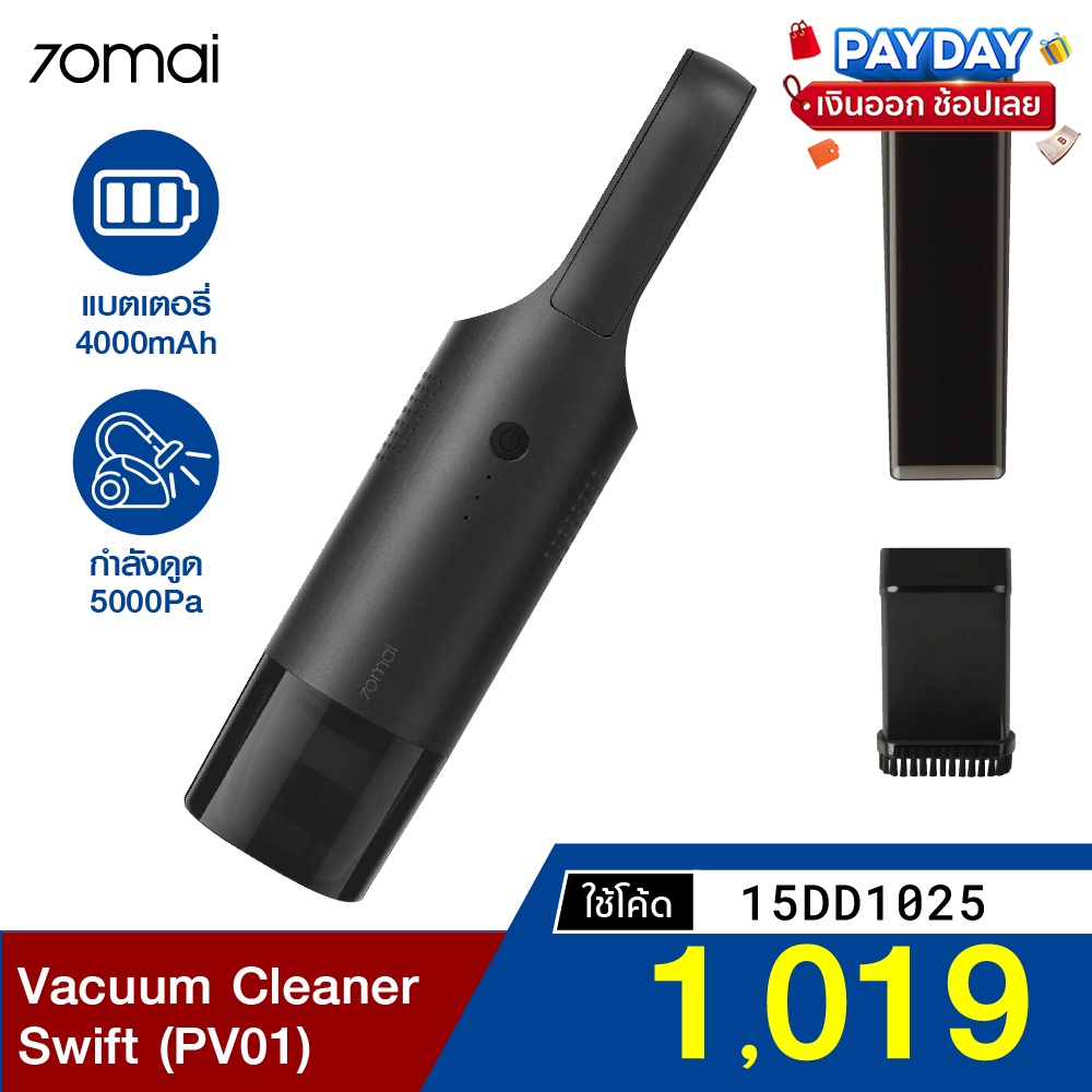 ศูนย์ไทย [1019 บ. โค้ด 15DD1025] 70mai Vacuum Cleaner Swift เครื่องดูดฝุ่นในรถ ไร้สาย 5000Pa ประกัน-1Y