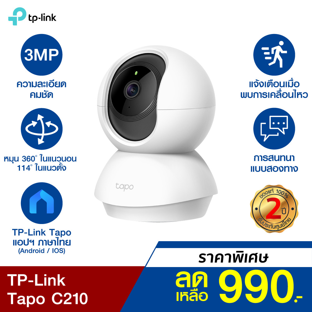 [ราคาพิเศษ 990บ.] TP-Link Tapo C210 กล้องวงจรปิด (Global Version) คมชัด 3 ล้านพิเซล หมุนได้ 360º -30D