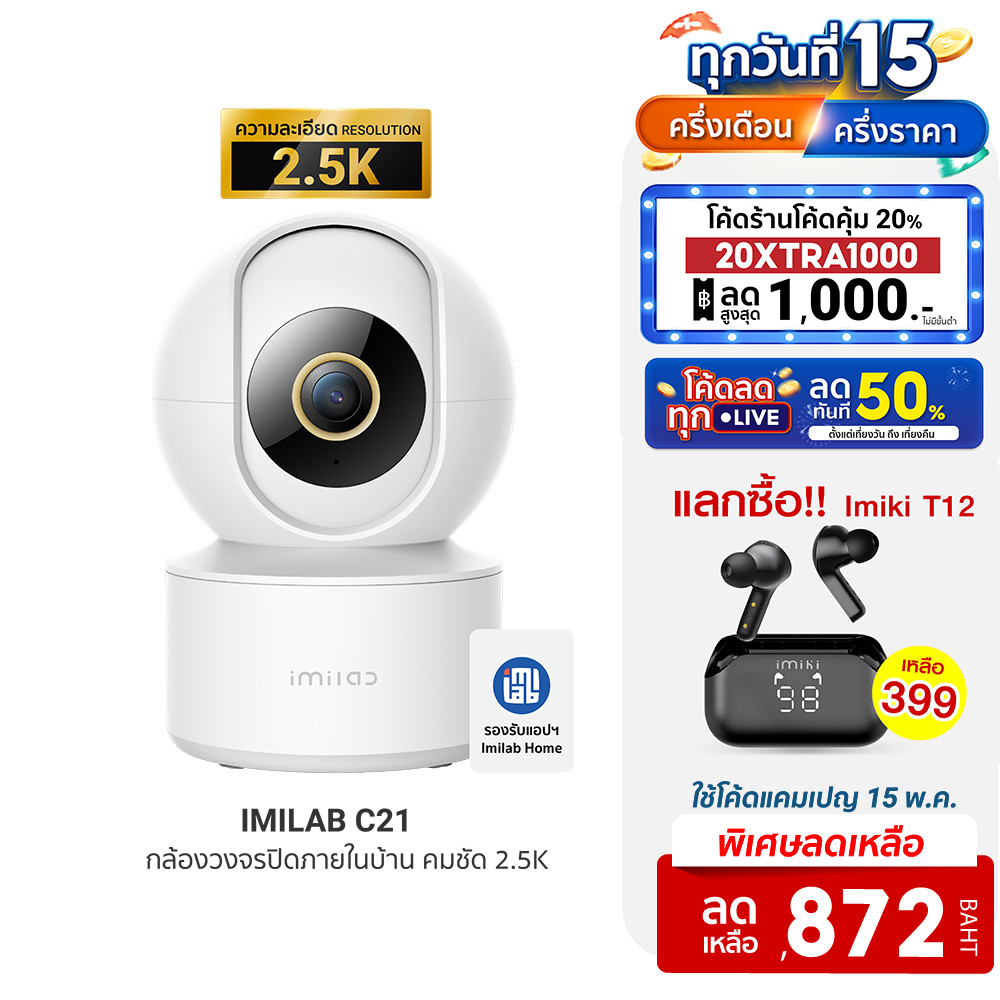 [872 ดูโค้ดรูป 2] IMILAB C21 (GB V.) กล้องวงจรปิด wifi ภายในบ้านคมชัด2.5K แสดงภาพสีกลางคืน แอปฯ Imilab Home -2Y