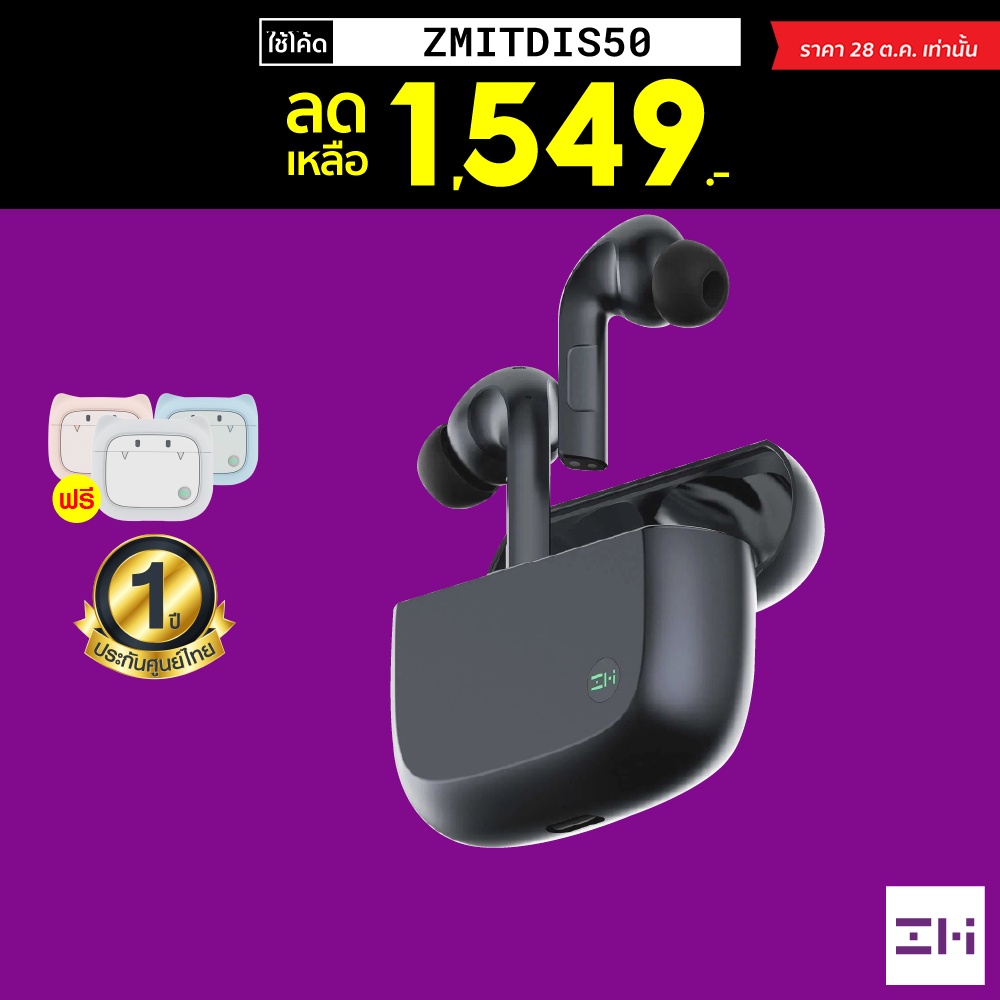 [1549บ.ใช้โค้ด 2ต่อ] ZMI PurPods Pro ฟรี เคส (GB.V) หูฟังไร้สาย ตัดเสียงรบกวน ANC Bluetooth 5.2-1Y |