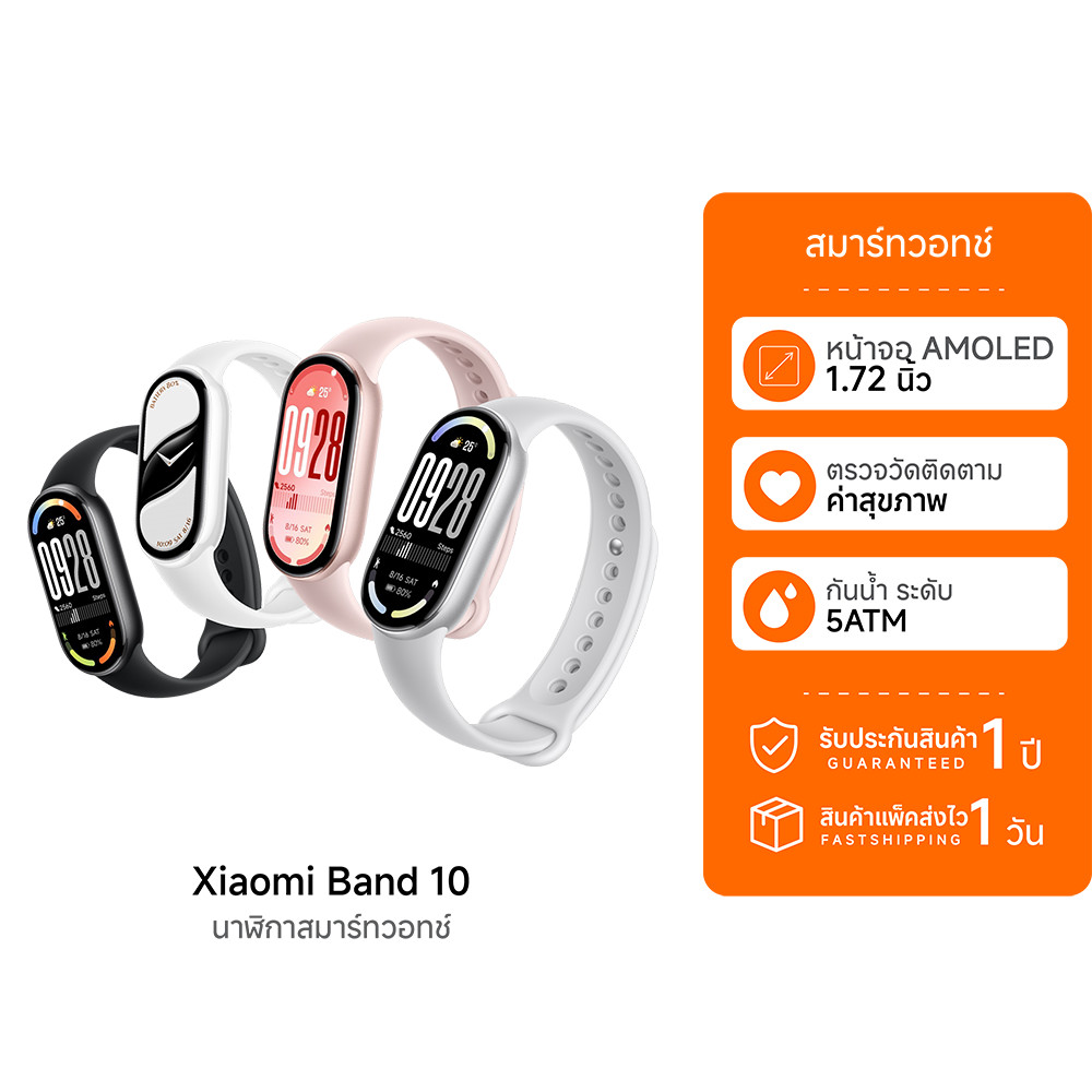 (รับประกันศูนย์ไทย) Xiaomi Smart Band 10 Smartwatch นาฬิกา สมาร์ทวอทช์ หน้าจอ AMOLED 1.72นิ้ว โหมดกีฬา150+ -1Y |