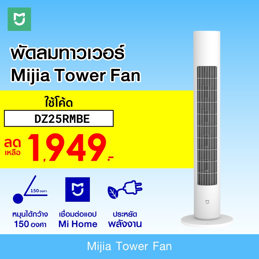 [เหลือ 1949 บ. โค้ด DZ25RMBE] Xiaomi Mijia Tower Fan พัดลมทาวเวอร์ ดีไซน์สวย เชื่อมต่อแอพ Mi Home 3 โหมดแรงลม -30D |