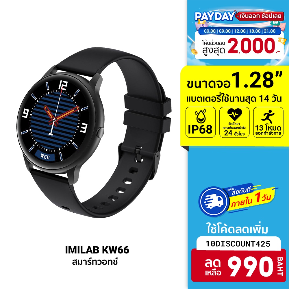 [990 บ. โค้ด 10DISCOUNT425] ศูนย์ไทย IMILAB Watch KW66 นาฬิกาอัจฉริยะ 13 โหมดการออกกำลังกาย -1Y |