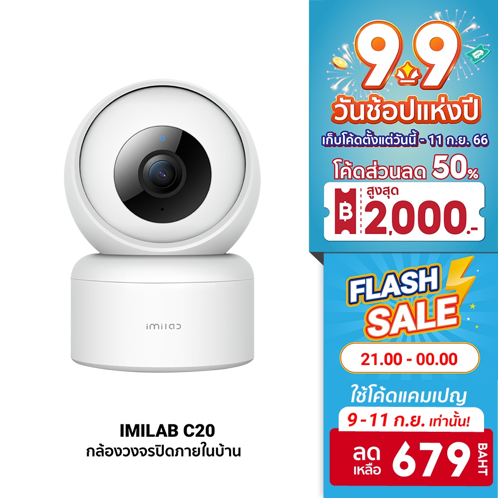 [679บ. ดูโค้ดรูป 2] IMILAB C20 + Adapter (GB V.) กล้องวงจรปิด Xiaomi wifi ภายในบ้าน1080P AI |