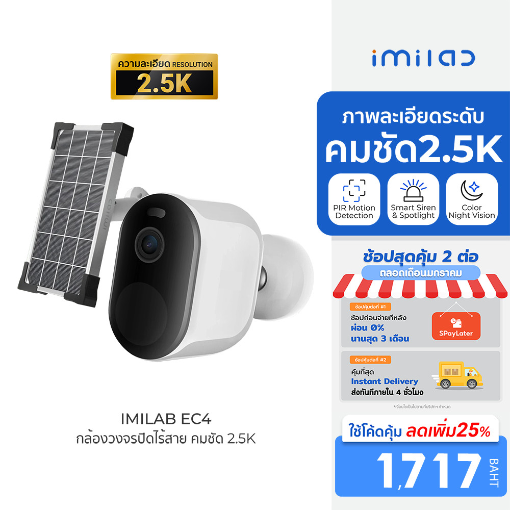 [ลดเหลือ 1717] IMILAB EC4 (GB V.) กล้องวงจรปิดไร้สาย คมชัด 2.5K แสดงภาพสีกลางคืน 4MP ศูนย์ไทย -1Y |