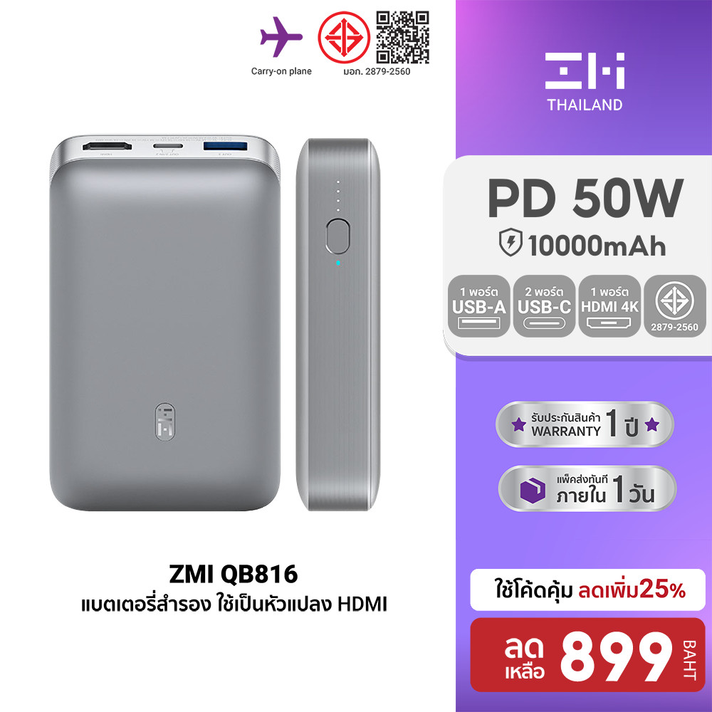 [ลดเหลือ 899] ZMI QB816 ใช้งานเป็น HDMI เปลี่ยนได้ 3 โหมด 50W พกพาสะดวก ศูนย์ไทย -1Y