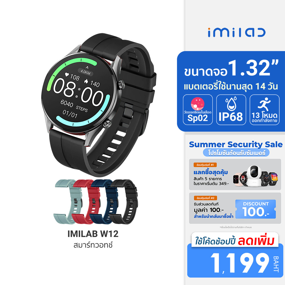 [ลดเหลือ 1199] IMILAB W12 นาฬิกาผู้ชาย นาฬิกาสมาร์ทวอทช์ วัดออกซิเจนในเลือด SpO2 ศูนย์ไทย -30D