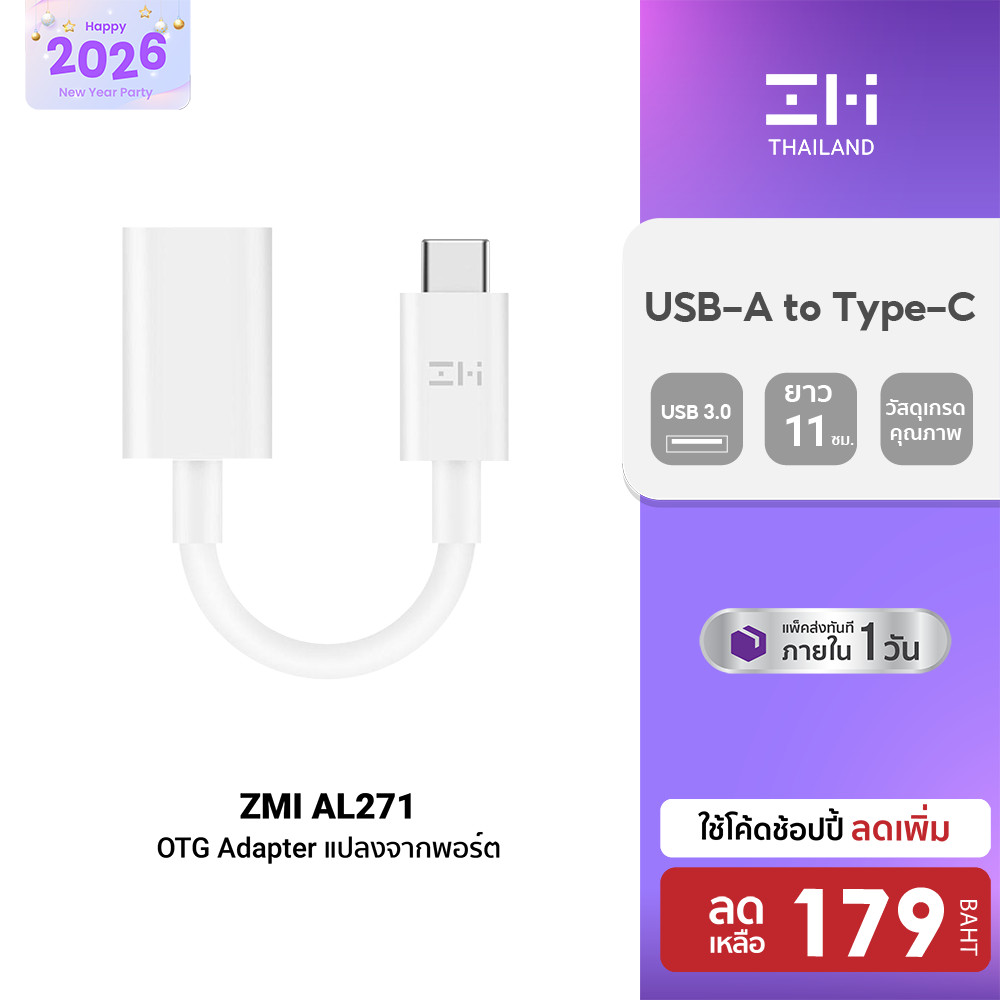 [ลดเหลือ 179] ZMI AL271 OTG Adapter แปลงจากพอร์ต Type-C เป็นพอร์ต USB สำหรับ SAMSUNG /HUAWEI /อื่นๆ
