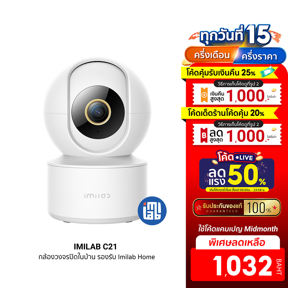 [1032บ. ดูโค้ดรูป 2] IMILAB C21 (GB V.) กล้องวงจรปิดภายในบ้าน คมชัดมากถึง 2.5K ภาพสีกลางคืน แอปฯ Imilab Home -2Y |