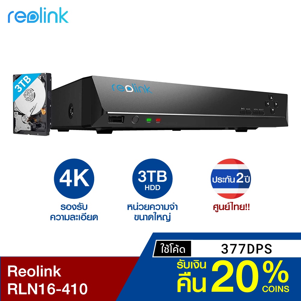 [รับ 600 Coins โค้ด 377DPS] Reolink RLN16-410 PoE Switch รองรับการเชื่อมต่อสูงสุด 16 อุปกรณ์ ประกันศูนย์ไทย-2Y |