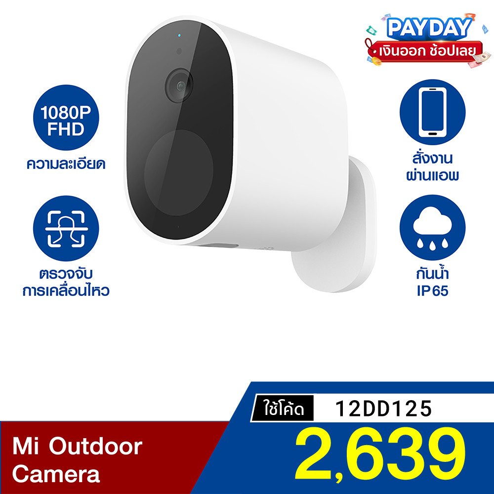 [2639 บ. โค้ด 12DD125] Xiaomi Mi Outdoor Camera กล้องวงจรปิดไร้สาย (GB V.) 1080p แบตในตัว + Gateway -1Y |