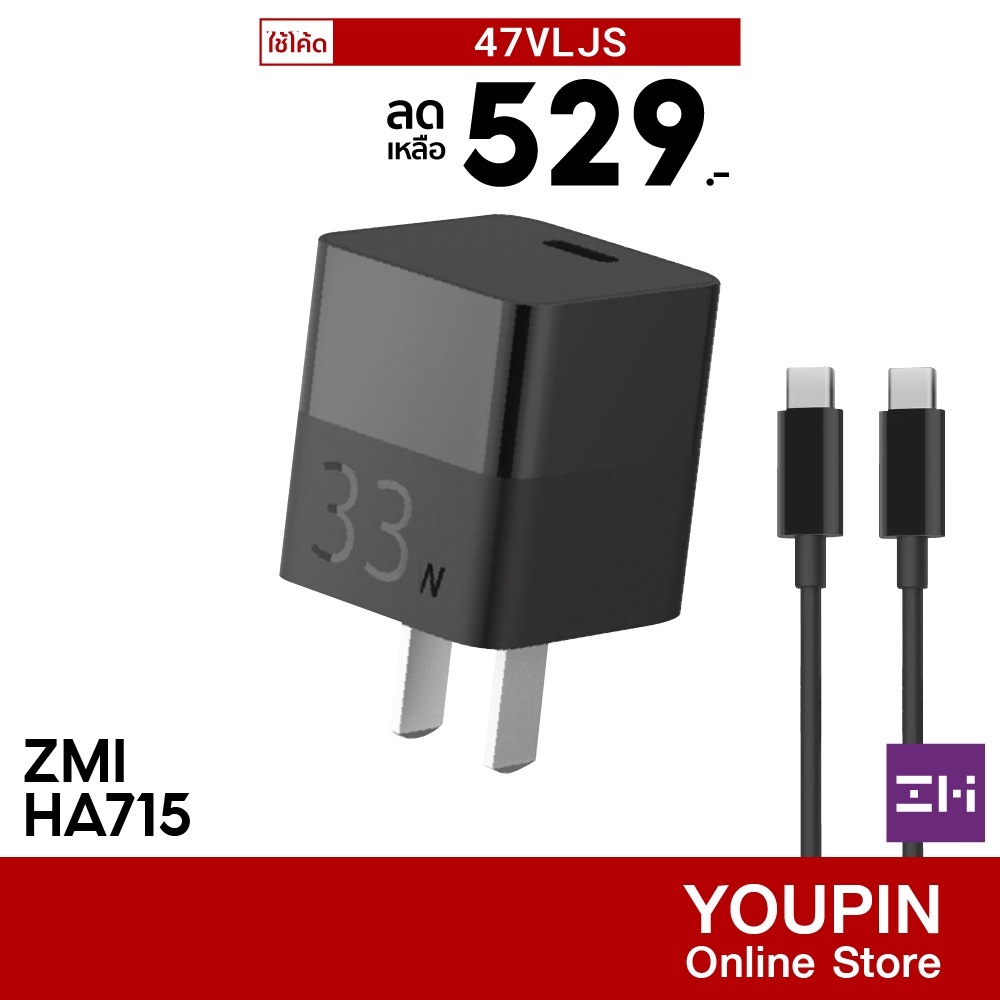[529บ.โค้ด47VLJS] ZMI HA715 Gan 33W MINI เทคโนโลยีแกลเลียมไนไตรด์สีดำ ขนาดเล็กกะทัดรัด - 2Y |