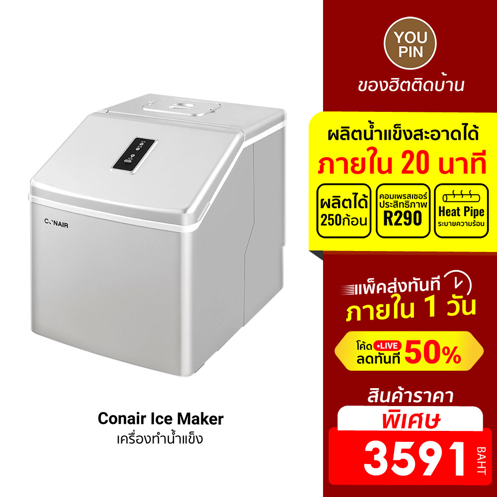 [ราคาพิเศษ 3990บ.] Conair Ice Maker เครื่องทำน้ำแข็ง 1.3 kg. ผลิตน้ำแข็ง 20 นาที ครั้งละ 24 ก้อน -7D |