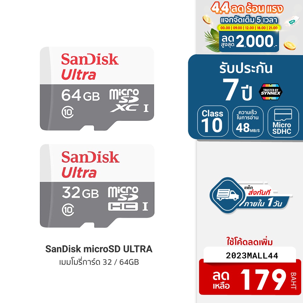 [179บ.โค้ด2023MALL44] SanDisk เมม microSD 32/64GB ULTRA (Class10) ประกัน Synnex -7Y |