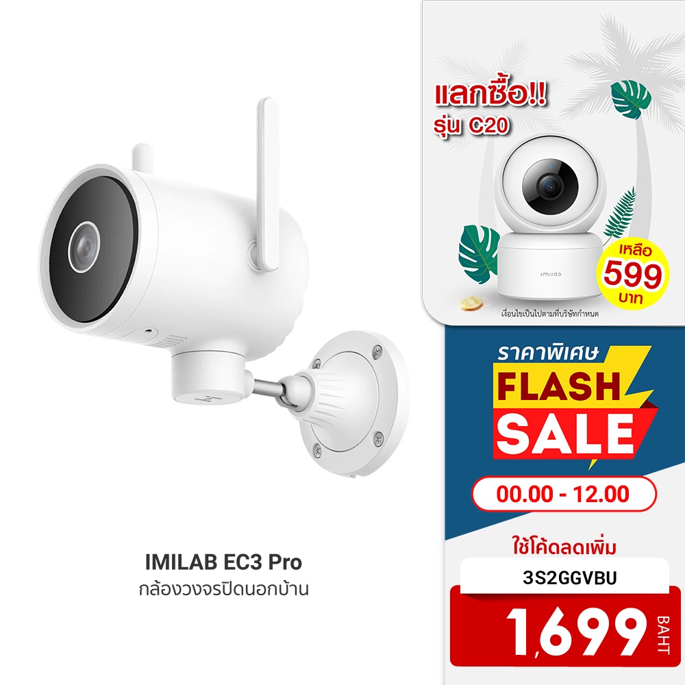 [1699บ.โค้ด3S2GGVBU] IMILAB EC3 / EC3 Pro กล้องวงจรปิด Ai ไล่โจร คมชัด 2K ฉลาดมากขึ้น โหมดกลางคืนชัดขึ้น -2Y |