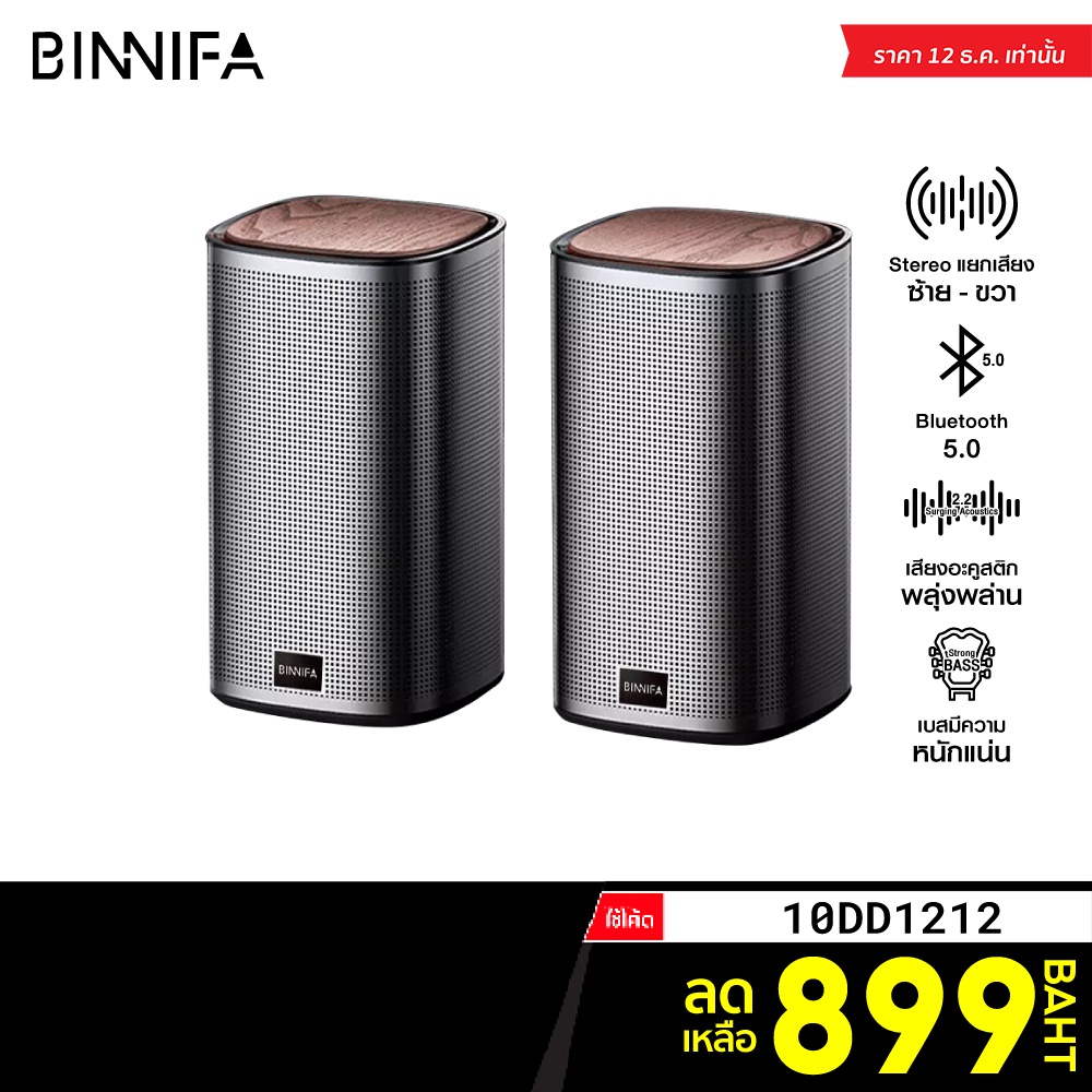 [899 บ. โค้ด 10DD1212] BINNIFA Play 2D ลำโพงคู่ ลำโพงบลูทูธ 2-in-1 ใช้ได้กับคอม และมือถือ -30D