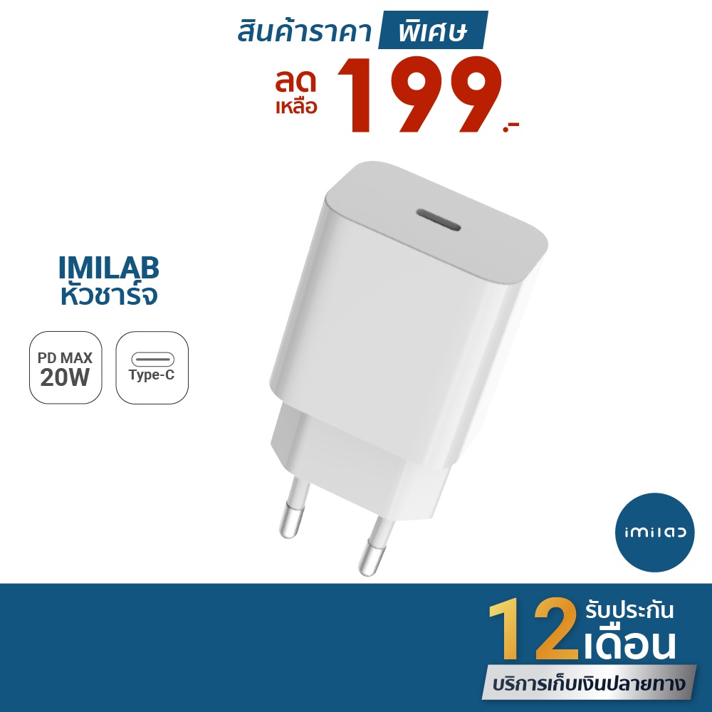 [ราคาพิเศษ 199บ.] IMILAB หัวชาร์จ 20W Type-C ใช้สำหรับ iPhone 13,14 รองรับเทคโนโลยีชาร์จด่วน PD -30D |