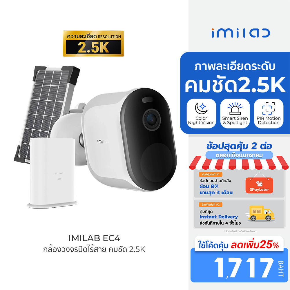 [ลดเหลือ 1717] IMILAB EC4 (GB V.) กล้องวงจรปิดไร้สาย คมชัด 2.5K 4MP แสดงภาพสีกลางคืน ประกันศูนย์ไทย -1Y |