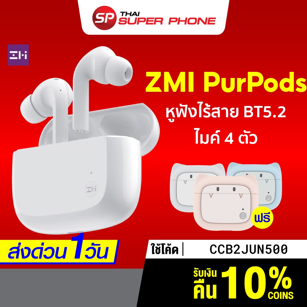 [รับ 119 Coins โค้ด CCB2JUN500] ZMI Purpods หูฟังไร้สาย ไมค์คู่คุยชัด แบตอึด 32 ชม. แอพรองรับไทย -1Y |