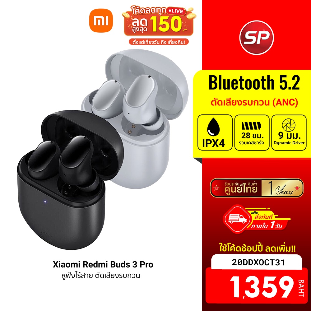 [ราคาพิเศษ] Xiaomi Redmi Buds 3 Pro ตัดเสียงรบกวน ANC Bluetooth 5.2 หูฟังไร้สาย แบตอึด 28 ชม. -1Y |