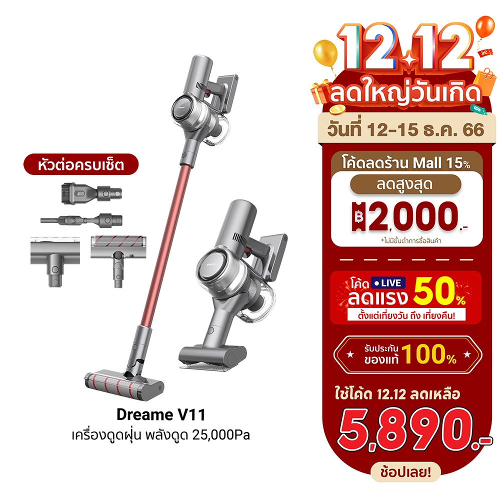 [5890 ดูโค้ดรูป 2] Dreame V11 / V11 SE / V12 เครื่องดูดฝุ่น ดูดไรฝุ่น ไร้สาย พลังดูด 25 / 24 / 27kPa |