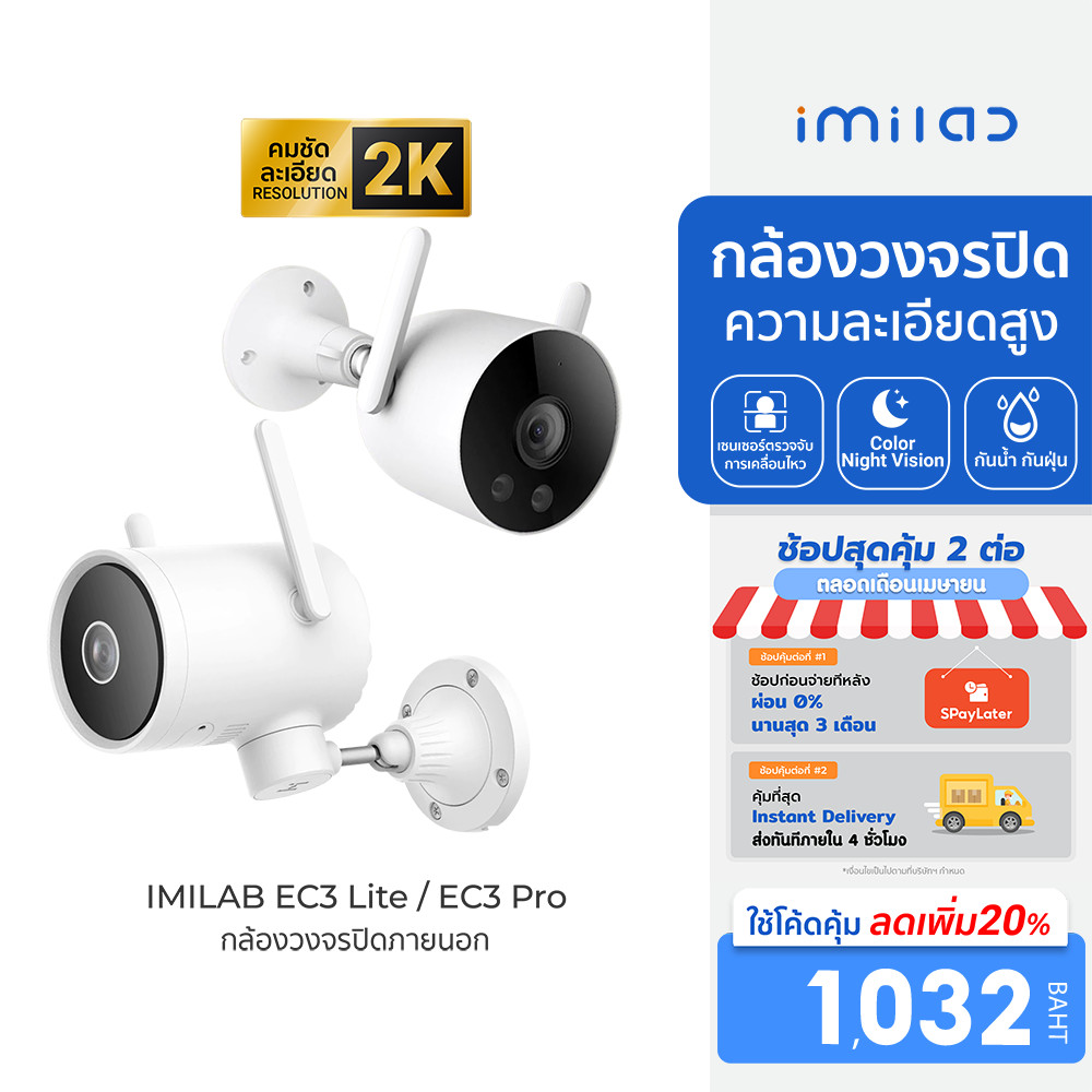 [1592บ.โค้ดDDX6JAN] IMILAB EC3 Pro กล้องวงจรปิดนอกบ้าน Ai ไล่โจร คมชัดสูง 2K ฉลาดมากขึ้น โหมดกลางคืนชัดขึ้น -2Y |