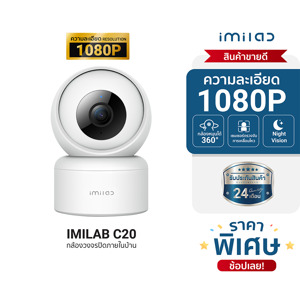 [ราคาพิเศษ] IMILAB C20 / C20 Pro (GB V.) กล้องวงจรปิด wifi 1080P หมุนได้ 360° AI -2Y |