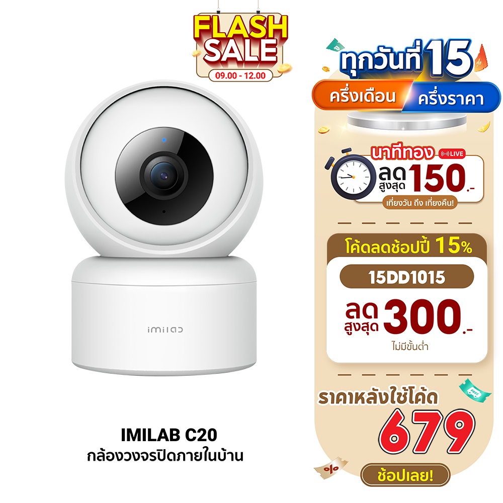 [679บ.โค้ด15DD1015] IMILAB C20 + Adapter (GB V.) กล้องวงจรปิดภายในบ้าน1080P หมุนได้ 360° AI ประกันศูนย์ไทย -2Y |