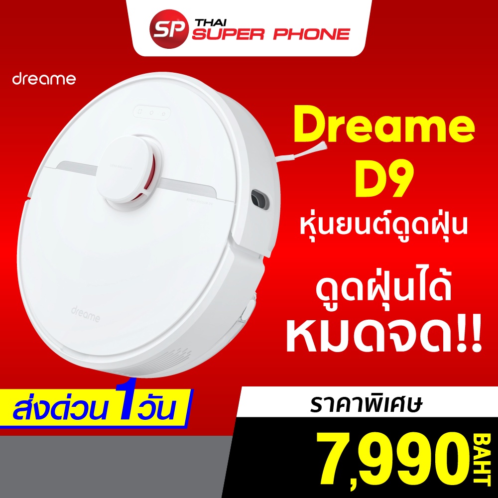 [ราคาพิเศษ 7990บ.] Dreame D9 หุ่นยนต์ดูดฝุ่นอิจฉริยะ พลังการดูด 3000Pa ดูดฝุ่นได้หมดจด -30D |