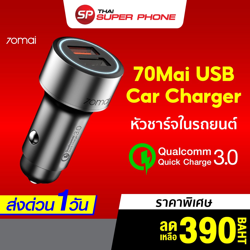 ศูนย์ไทย [ราคาพิเศษ 390บ.] 70Mai USB Car Charger หัวชาร์จในรถยนต์ รองรับQC3.0 ประกัน-1Y |