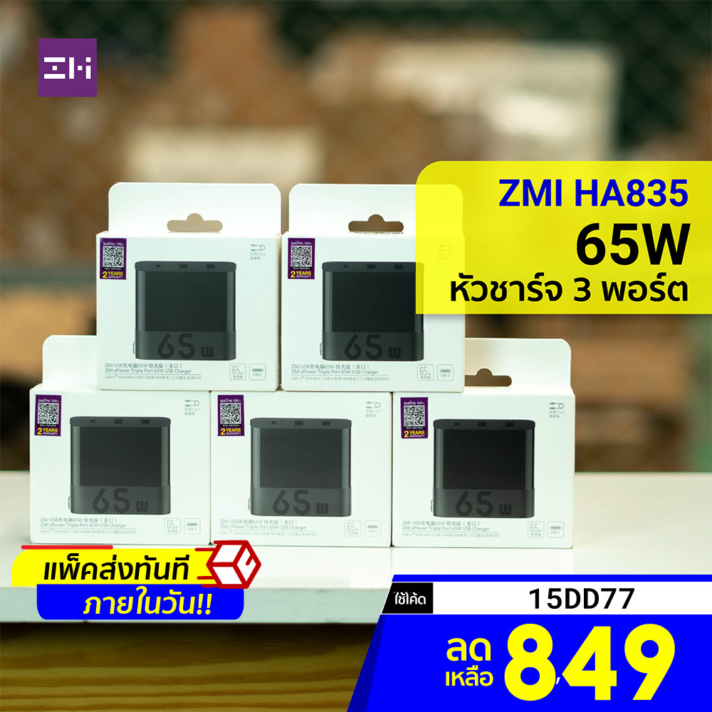 [849 โค้ด 15DD77] ZMI HA835 / HA835 พร้อมสายชาร์จ Type-C To C จ่ายไฟ 65W (1Type-C/2 USB-A) พกพาง่าย -2Y |