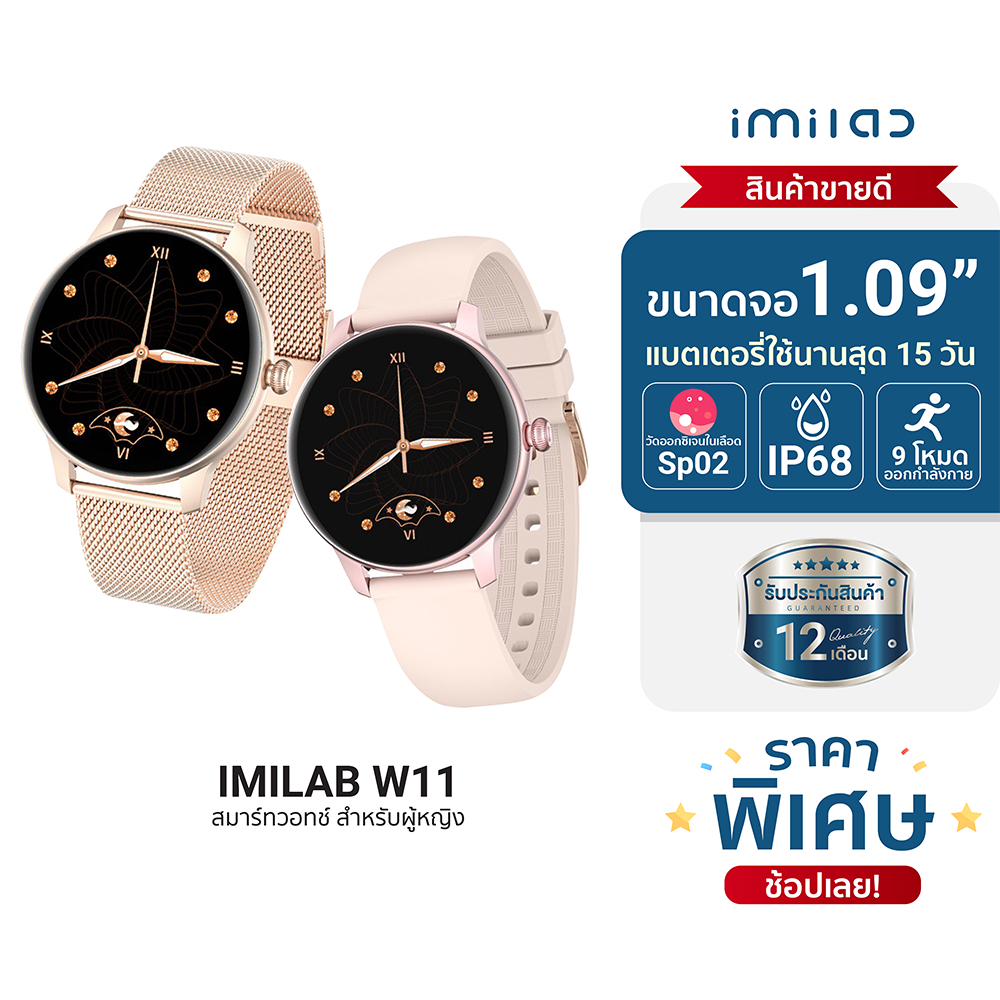 [ราคาพิเศษ] IMILAB W11 นาฬิกาข้อมือผู้หญิง นาฬิกาสมาร์ทวอทช์ วัดออกซิเจนในเลือด ศูนย์ไทย |