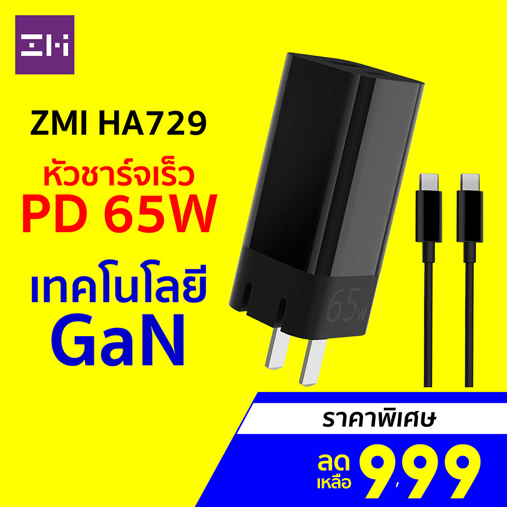 [ราคาพิเศษ 999บ.] ZMI HA729 Gan 65W ขนาดเล็ก จ่ายไฟแรง อุณหภูมิต่ำ หัวชาร์จ ศูนย์ไทย -2Y |